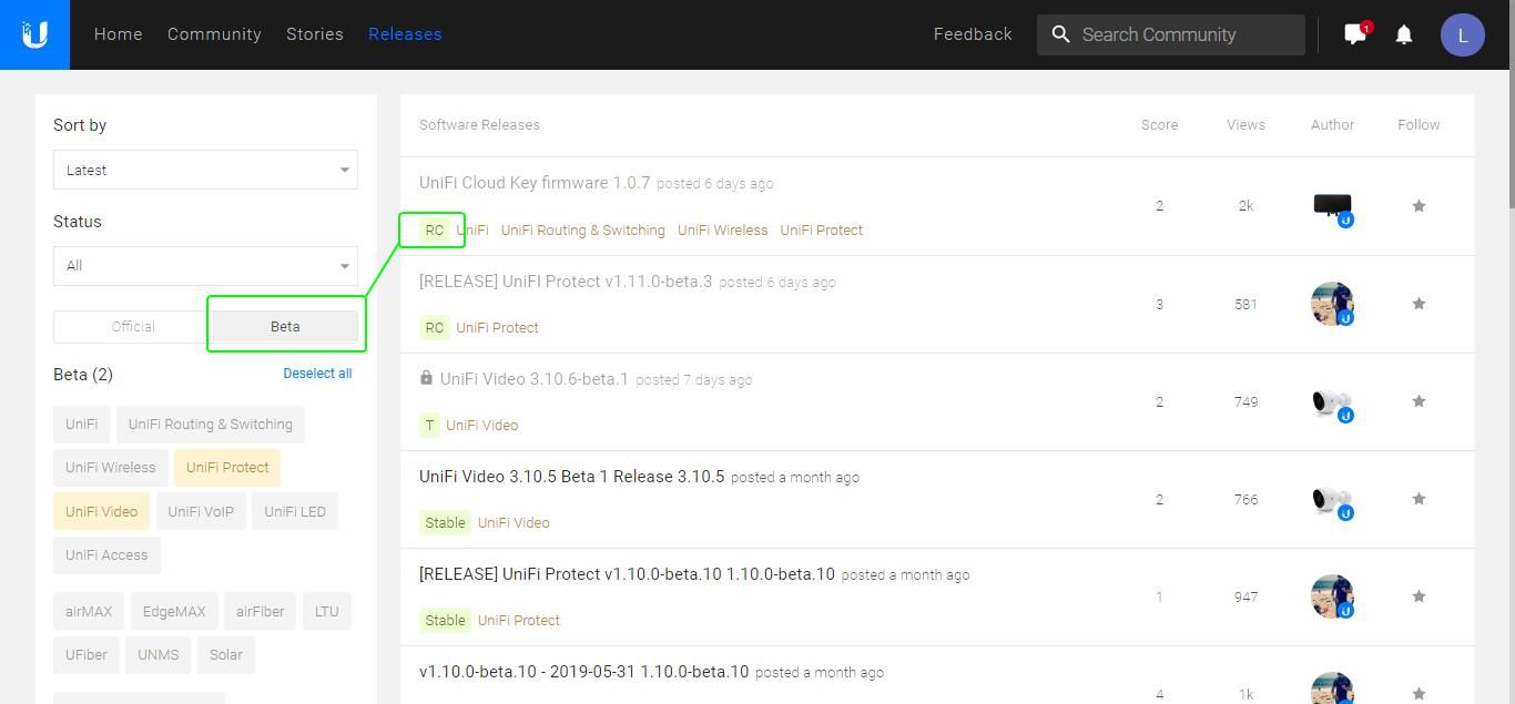 The latest unifi controller releases are listed in the software section.