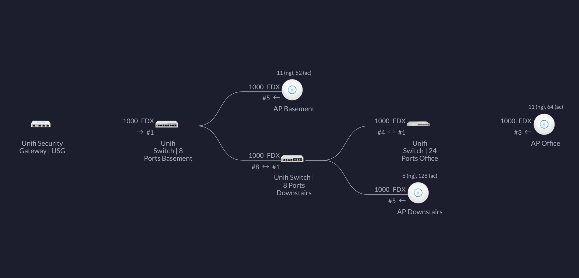 Unifi usg a couple of unifi aps and a 24 port non managed switch.
